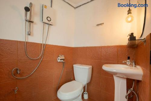 This classic Thai townhouse spans 4 levels, offering plenty of room for everyone to relax and feel at home: Ground floor: 🛋️ A cozy living room with a sofa and TV 🍽️ A dining area 👩🍳 A fully equipped kitchen First floor: 🌿 Two single bedrooms with views of the trees 🚿 Two bathrooms with relaxing rain showers 🛋️ A second living room with a large sofa Third floor: 🛏️ A spacious bedroom with a king-size bed, a work space, and a private bathroom A laundry area 🚿 Another shared bathroom Fourth floor: 🛏️ A queen-size bedroom 🌴 A lush rooftop with table, chairs, and a parasol — perfect for morning coffee or evening chats