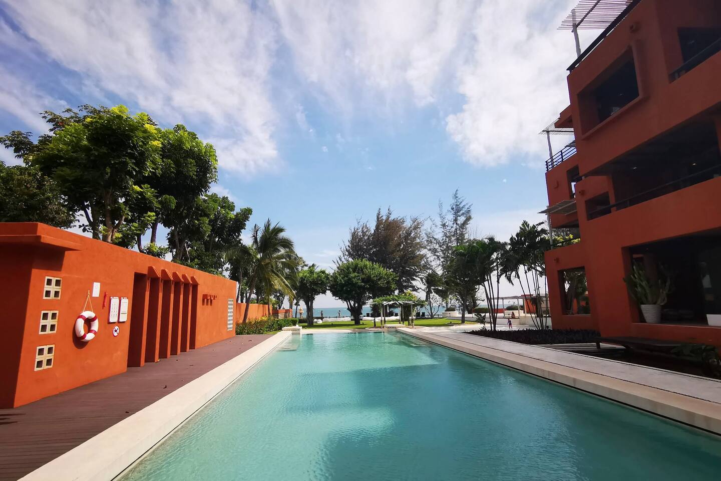 The project has total of 3 separated pool located across the project plan with one located on the seaside to the beach. It's also offer childplay room and gym facilities. In side the unit it's a spacious 2 bedroom and 2 bathroom unit.
