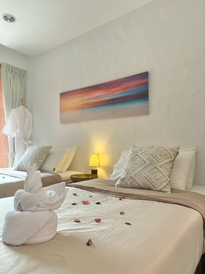 Step into coastal bliss in this modern apartment just moments from the beach. Perfect for families, couples, or small groups seeking comfort and relaxation. โจ Why Youโll Love It : - ๐๏ธ Spacious living with fast WiFi & 55" TV - ๐ณ Fully equipped kitchen - ๐๏ธ 2 Cozy, comfortable bedrooms - ๐ Private balcony - ๐ Access to pool, jacuzzi & fitness center - On-site playground Make your next beach getaway unforgettable in this peaceful and well-appointed home away from home.