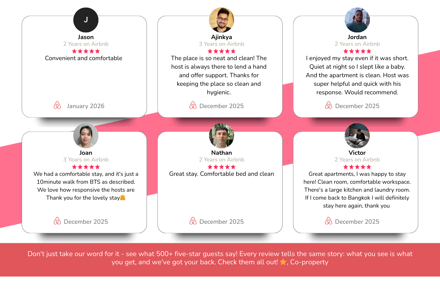 Enjoy a private, comfy and large king-bed room in a peaceful guesthouse tucked in the vibrant Ekkamai neighborhood – perfect for digital nomads, couples, or short-term explorers. 🔑 Self check-in - No lockboxes, no keys! - Check in anytime, with no fuss, just your persona PIN number for the main entrance and your bedroom doors. 💤 Your Private Room Includes: • King-size bed with hotel-quality linens • En-suite bathroom with hot shower, fresh towels & toiletries • Quiet, powerful air conditioning • Smart TV with Netflix • High-speed Wi-Fi + dedicated work desk • Warm lighting and peaceful atmosphere 🍽 Shared Kitchen & Dining Area: • Stove, basic cookware & utensils • Coffee machine ☕ • Fridge + freezer • Dining table for meals or connecting with other travelers • Complimentary laundry service (or use the machines yourself) 🧩 Shared Hallway Lounge (Just Outside Your Door): • Board games and card games to enjoy with your companion or other travelers • Travel guides, Bangkok maps & local recommendations • Space to relax or flip through a book while you plan your day • Designated shoe-removal zone to help keep rooms clean and tidy 🧼 Included Guest Services: • Daily housekeeping (just request it!) • Complimentary laundry – we wash and dry for you • Friendly, responsive host support during your stay 📍 Prime Ekkamai Location – With a Local Twist: Located just steps from BTS Ekkamai and surrounded by amazing cafés, local markets, and shopping malls, you’ll love the convenience of this walkable neighborhood. Please note: Being close to Sukhumvit Road and lively local markets does mean you might hear the vibrant sounds of Bangkok, especially during peak hours. Most guests find it manageable, and earplugs are available for light sleepers. But for travelers who want to immerse themselves in real Bangkok life, this spot offers the perfect balance of local flavor and central convenience — all with quick access to the BTS, shopping, nightlife, and street food. 🎒 Optional Extras: • Early check-in / Late check-out (when available) • Airport pick-up & drop-off • Secure luggage storage for early arrivals or late departures