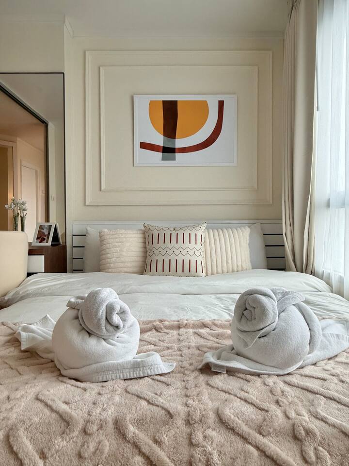 Cozy, fully-equipped Studio| MRT Rama 9, Pool&Gym