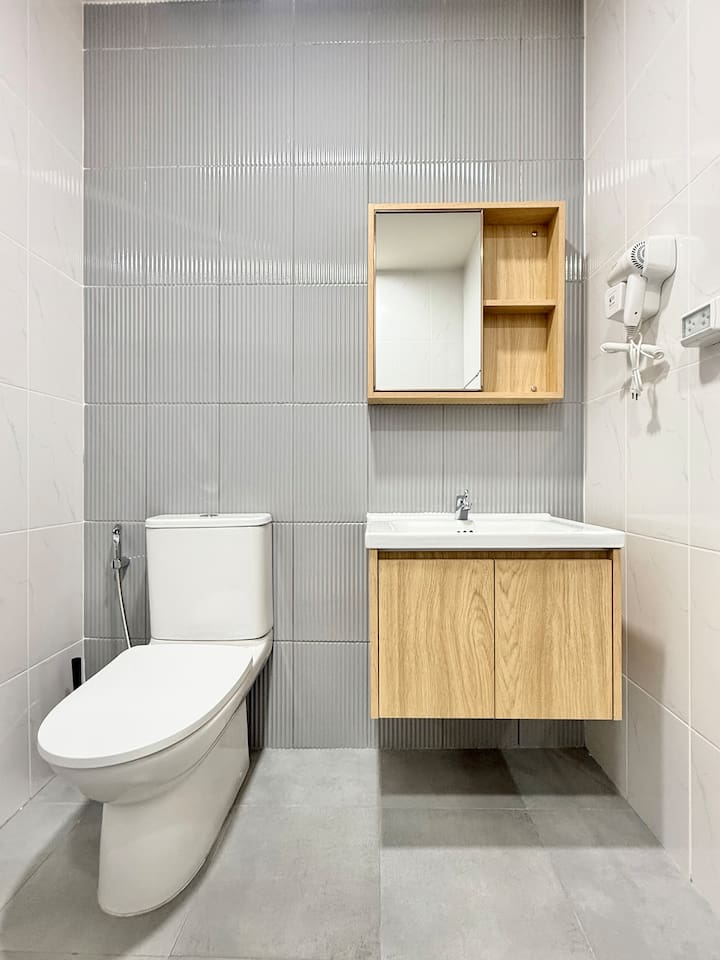 This spacious 2-bedroom, 2-bathroom unit features a living room with a smart TV, a dining table, and a fully equipped kitchen stocked with cutlery and utensils. This makes it the perfect place if you are a a. tourist seeking a quiet, stylish stay b. Digital nomad or remote worker c. business traveler d. families relocating or visiting Bangkok e. short-term or long-term guests Guests can also enjoy widespread access to several places like: ☕ Parris Café 💇 Pixie Salon 🍽 Cheesecake House Restaurant (comfort food beyond desserts!) 🛒 The Commons – Trendy open-air mall with cafés and boutiques 🏙️ J Avenue – Lifestyle spot for dining, shopping & chill time 👜 EmQuartier & Emporium – Luxury malls just 1 BTS stop away 🎎 Gateway Ekamai – Japanese-themed mall with food & fashion Free private parking is provided for each unit.