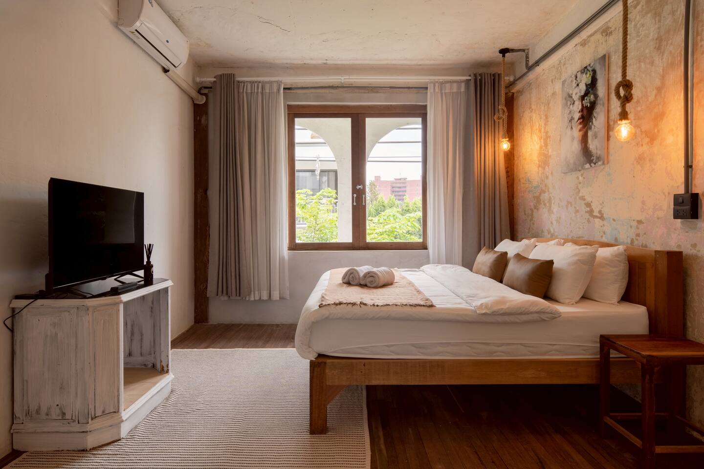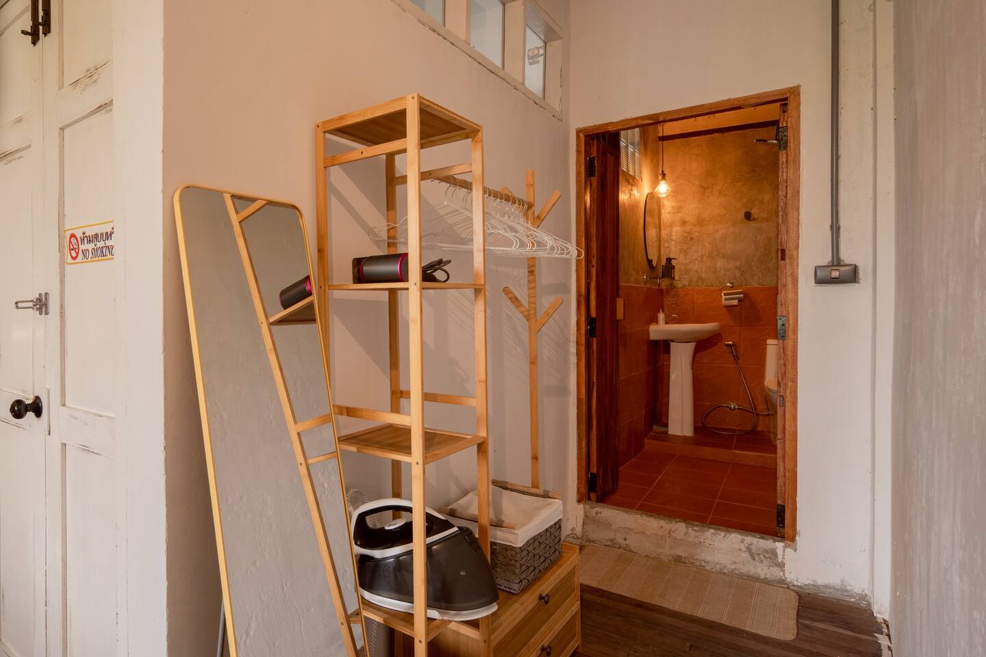 This classic Thai townhouse spans 4 levels, offering plenty of room for everyone to relax and feel at home: Ground floor: ๐๏ธ A cozy living room with a sofa and TV ๐ฝ๏ธ A dining area ๐ฉโ๐ณ A fully equipped kitchen First floor: ๐ฟ Two single bedrooms with views of the trees ๐ฟ Two bathrooms with relaxing rain showers ๐๏ธ A second living room with a large sofa Third floor: ๐๏ธ A spacious bedroom with a king-size bed, a work space, and a private bathroom A laundry area ๐ฟ Another shared bathroom Fourth floor: ๐๏ธ A queen-size bedroom ๐ด A lush rooftop with table, chairs, and a parasol โ perfect for morning coffee or evening chats